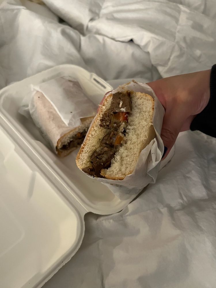 Beyond Steak Tips, Caramelized Onions, Caramelized Mushrooms, Melted Provolone Cheese, Grilled Red and Green Peppers, Served on Steamed and Mayo Toasted Roll. (Vegan)